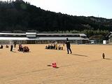 グラウンドの中央では、水消化器を使った消火体験をしました。みんな上手に消化器をつかうことができました。
