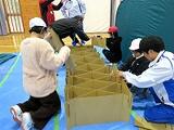 5・6年生は、避難所開設を体験しました。地域の方や役所の方に教わりながらみんなで協力して段ボールベッドを組み立てました。