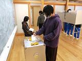 立会演説会が終わるとすぐに投票です。市の選挙管理委員会からお借りした本物の記載台と投票箱を使って、本物の選挙さながら(これも本物の選挙ですが)の投票にみんな気を引き締めて中里小中のリーダーを選びました。開票は明日です。