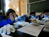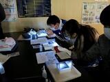 放射線に関する講義の後、「霧箱」と呼ばれる放射線を可視化できる装置を1人1個つくり、放射線の観測をしました。「霧箱」を無心で見つめ放射線を探す生徒たちの目は真剣そのものです。時おり見える放射線に「おーっ!」「あっ今見えた!」という声があちらから、こちらから。自然放射線がどこにでも存在すること、身の回りのものにも放射線を出すものがあることなどを、実験を通して理解することができました。講師の先生方、ありがとうございました。