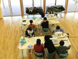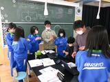 きららホールでは、5・6年生がミシンで手提げバッグを作っています。すぐ隣の理科室では8年生がコイルを巻いてモーター作りです。