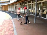 今日3月9日(月)、在校生と職員みんなで力を合わせて明日の準備をしました。苦労しながら紅白幕を張る後期課程の生徒。協力しながら会場に鉢花やプランターを運ぶ前期課程の5・6年生。1~4年生は、校舎内をピカピカに掃除をしました。