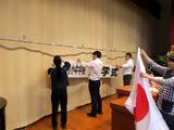 体育館は、ステージ上の看板を掲げれば完成です。職員みんなで協力して完璧に(!)仕上げました。
