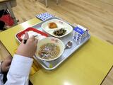 4月7日(火)、今年度初めての給食です。例年この日は、校庭に出て咲き誇る桜の木の下で給食を食べる学級があるのですが、残念ながら今年は雨・・・。